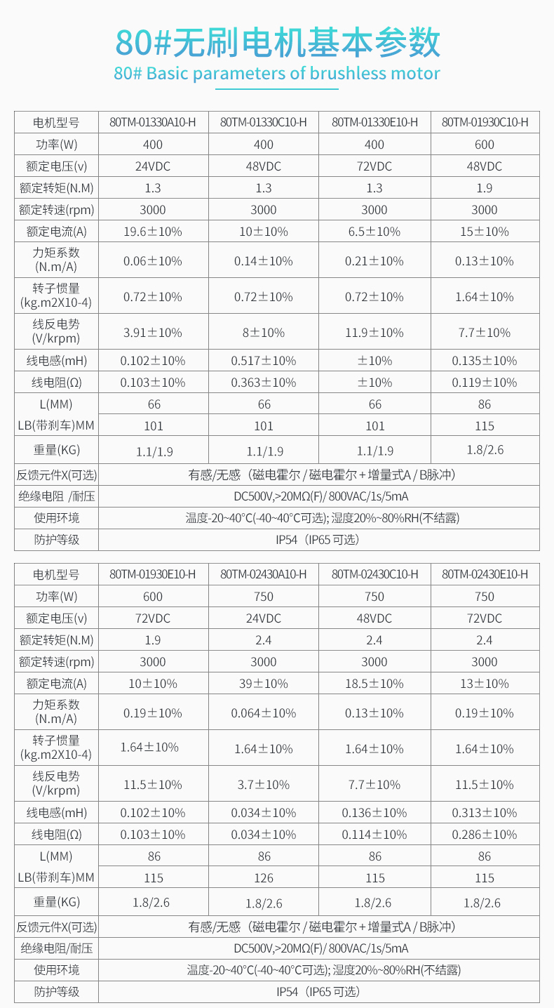 *电机种类多样(750~1500W,DC24~144V,带制动器,油封等)