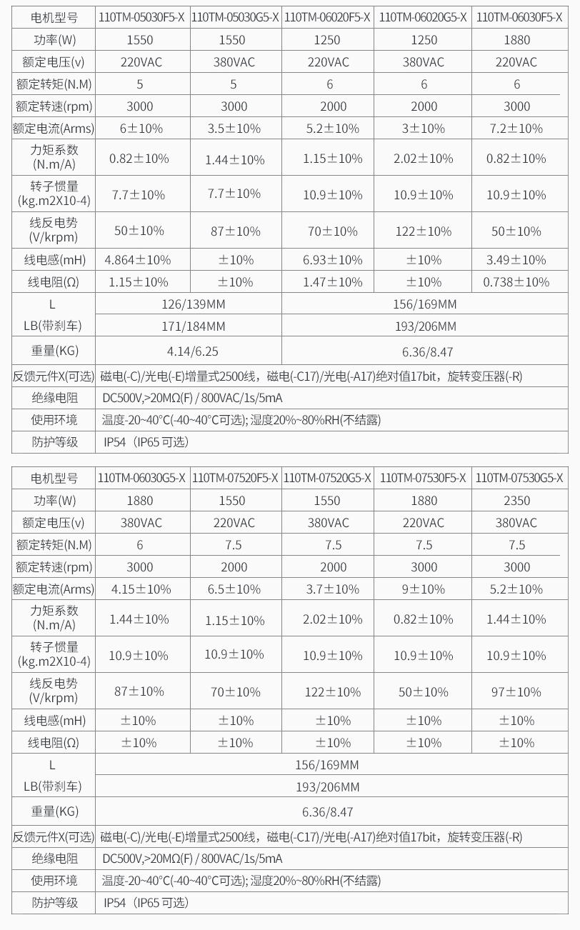 *电机种类多样(1050~2350W,110VAC,220VAC,380VAC,带制动器,油封等)