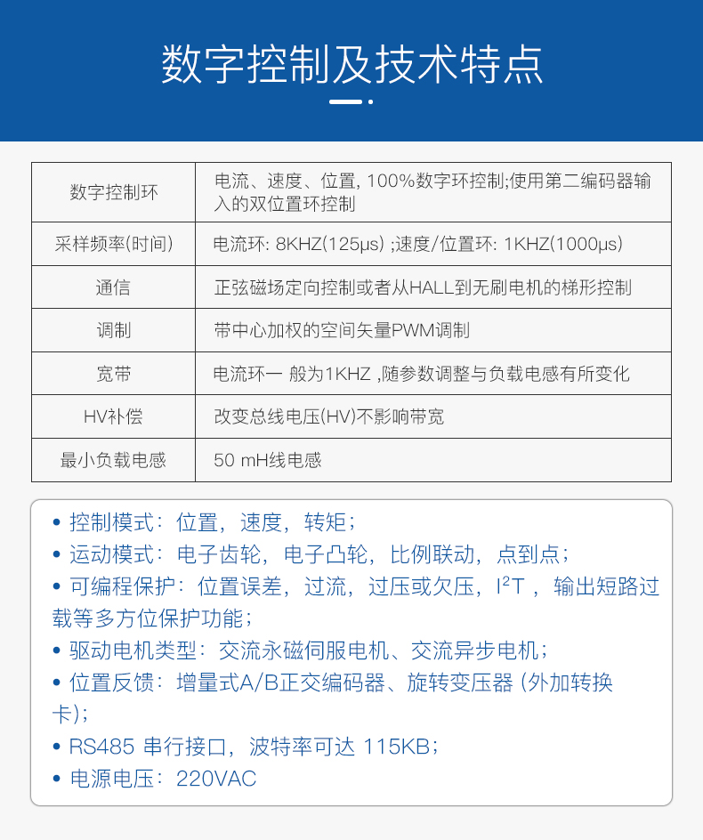 •是一款交流供电、通用、高性能、结构紧凑的全数字伺服驱动控制器
